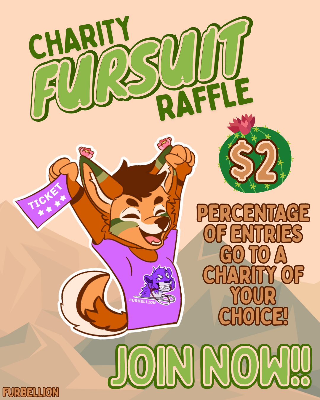 The 10k Raffle is a Charity Fullbody Fursuit Giveaway of the Premade design - Mojave the Cactus Canine. You can purchase a ticket below to support Charity! You can also see the design and process of making the giveaway suit on our Instagram page! The winner will be announce in October of 2025, and you can purchase as many tickets as you like! A review on the listing is equal to a free entry! Message us if you would like to create fanart of Mojave for a free entry, as well! Winner gets Mojave's head, hand paws, tail, feetpaws, and bodysuit as well as any art and goodies provided by the community and us!